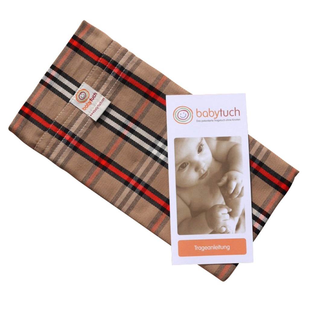 Entdecken Sie das Tragetuch Modell Kariert von Babytuch.ch – ein knotenloses und bequemes Babytragetuch in klassischem Karo-Design mit Beige, Rot, Natur und Schwarz. Ideal für Eltern, die Wert auf Komfort und Stil legen. Hergestellt aus hochwertiger Baumwolle, bietet es optimale Unterstützung für Ihr Baby und ist einfach in der Anwendung. Perfekt für die Kreuztrage, die häufigste Trageweise, empfehlen wir den Kauf von zwei Babytüchern für maximalen Komfort.